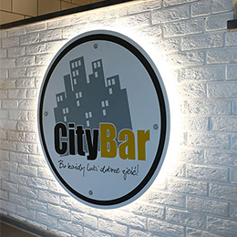 Projekt, druk oraz montaż fototapet dla City Bar z Tarnowskich Gór.