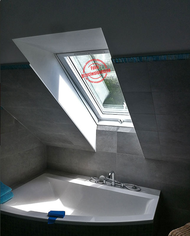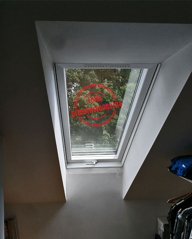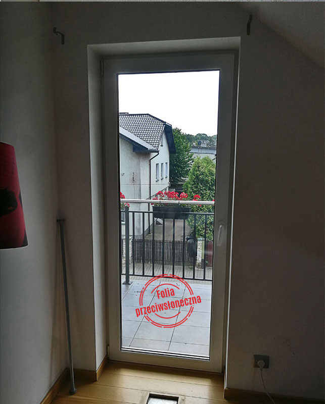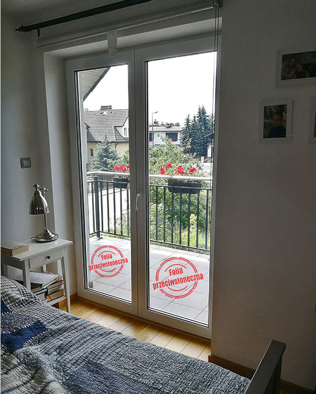 Oklejenie okien w domku jednorodzinnym w Gliwicach. Naszym celem było zwiększenie intymności (zmniejszenie widoczności do wnętrza domu) oraz zmniejszenie nagrzewania się dla poprawy komfortu cieplnego w mocno słoneczne dni. Użyliśmy zewnętrzną lustrzaną folię „średnie lustro” o parametrach: