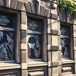 Projekt i druk wizytówek klasycznych oraz składanych dla studia tatuażu Haza Tattoo z Tarnowskich Gór.