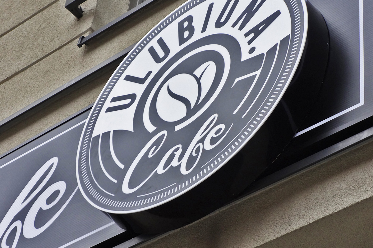 Wykonanie i montaż kasetonu świetlnego na ramie aluminiowej plus kasetone koło dla kawiarni z Gliwic.