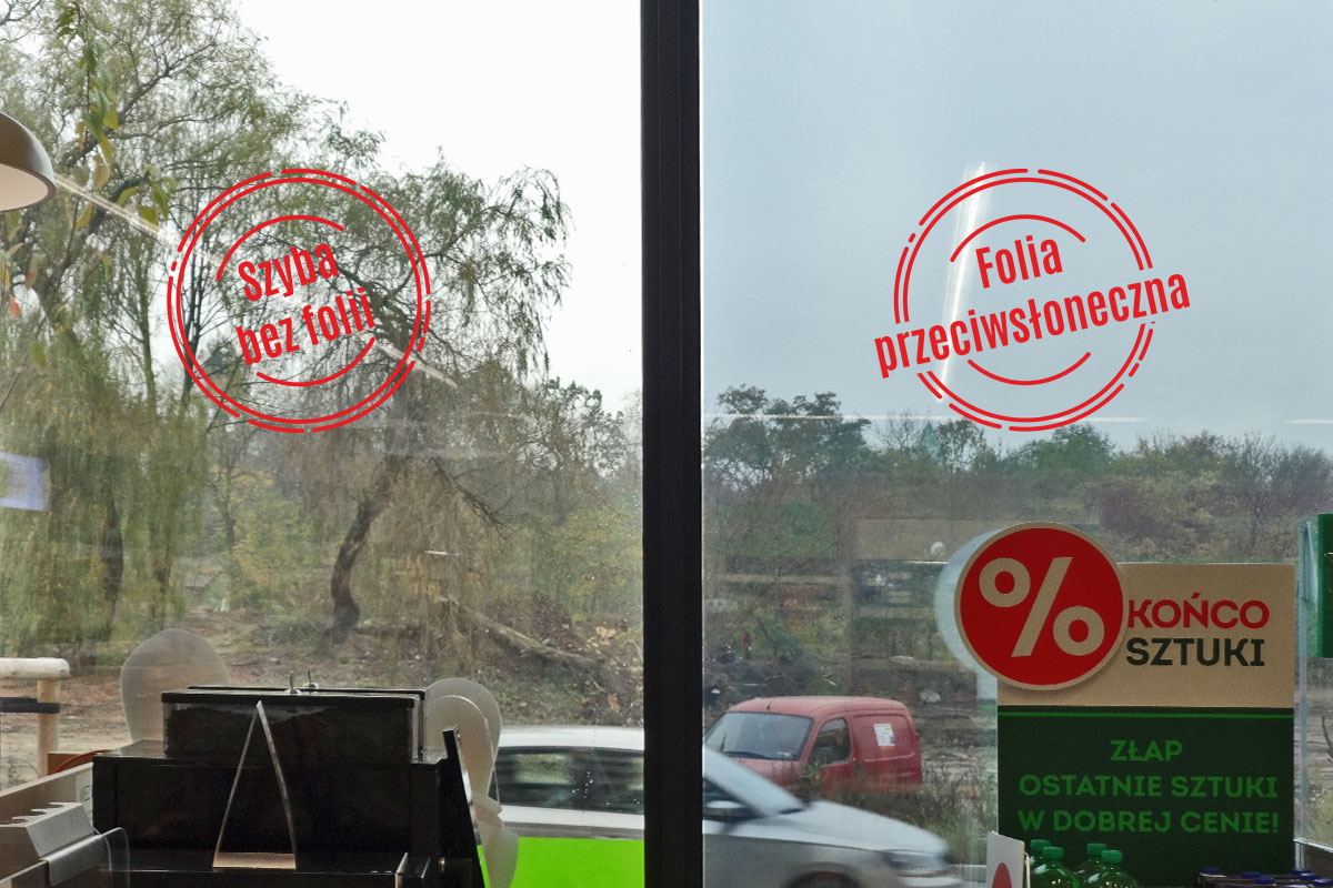 Folia ma za zadanie ograniczyć wpadanie ciepła do sklepu przez duże okna (wysoka temperatura skutkowała topnieniem i niszczeniem niektórych towarów znajdujących się blisko okien).
